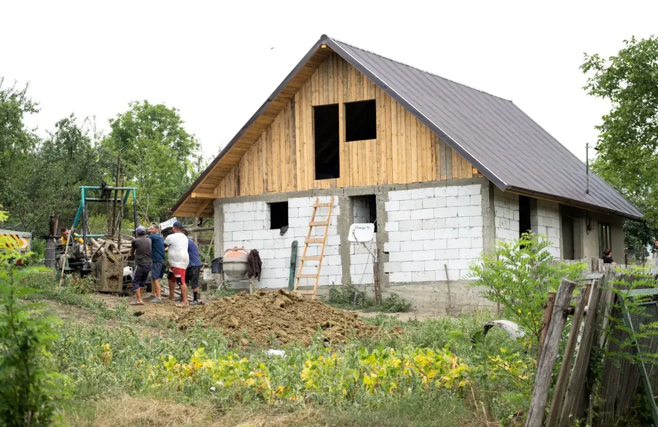 Iar Dumnezeu i-a ținut uniți și în putere de muncă, sănătoși. An de an și parcă prunc cu prunc, au învățat să crească și să-și îmbunătățească traiul. „Am făcut acte pe-o casă, cu banii de la nuntă. Dar casa a ars când o aveam pe Mihaela. Apoi ne-am mutat la socri, unde l-am făcut pe Gabriel. După ce-a murit bunicul lui Constantin, am venit în căsuța lui cu o singură cameră. Era aici, mai sus, în curtea în care locuim astăzi. S-au născut Mălina și Bianca. Iar casa aceasta am început s-o facem când eram însărcinată cu Alin, băiatul care ne-a murit”. Pic cu pic, au reușit să facă două camere, din care una, cu sobă, e folosită și ca bucătărie pe timp de iarnă. Apoi s-a mai adăugat o încăpere numită acum cameră de oaspeți. În cele două camere care se încălzesc de la sobă dorm părinții și cei șase copii de la 18 ani în jos, iar oaspeți le mai sunt, uneori, ceilalți patru copii crescuți și plecați de acasă, care se mai întorc cu familia sau cu prietenii lor.